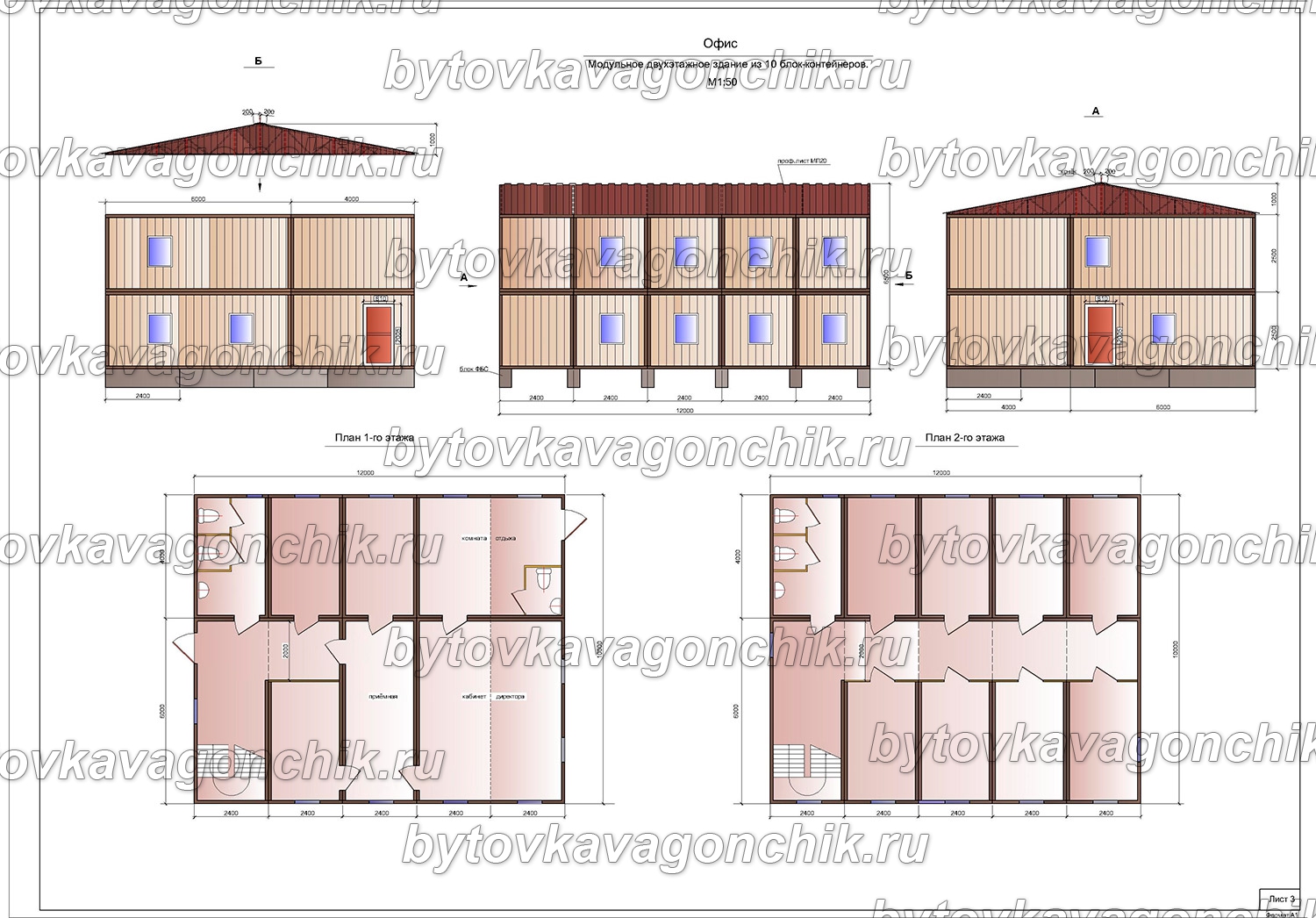 ГлавнаяПроекты готовых решенийМодульные здания → Административно-бытовой комплекс